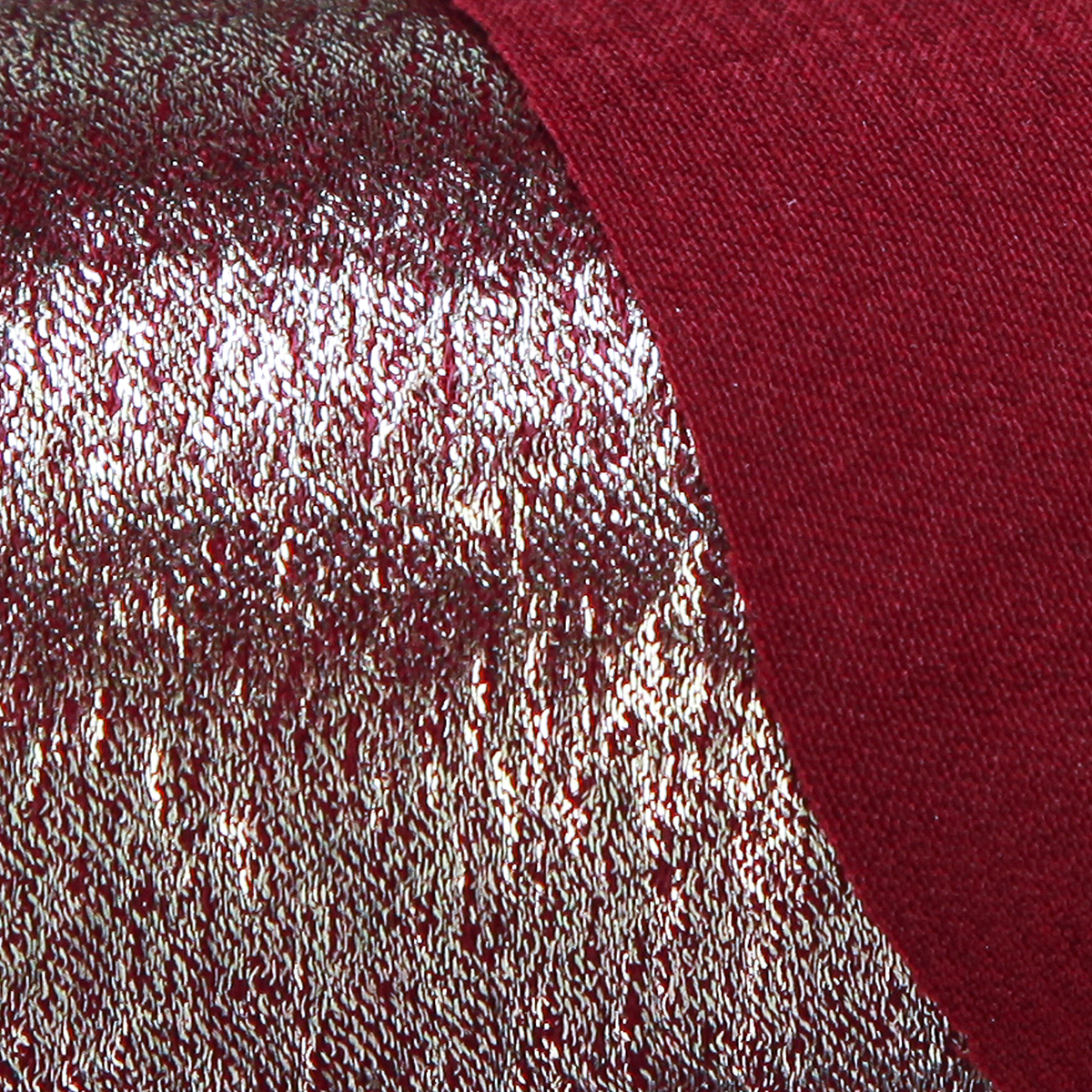 - Couleur : bordeaux profond avec des fils dorés brillants raffinés sur une face