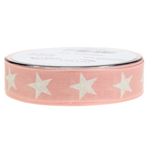 La partie supérieure du ruban de Noël rose avec une étoile en mica est composée à 100% de polyester. Il mesure environ 20 mètres de long et 25 millimètres de large. Il a un bord indéformable et est fourni sur un rouleau en plastique pratique.