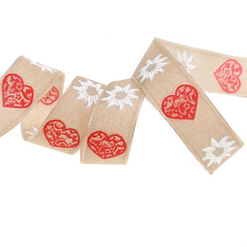 Ruban décoratif avec edelweiss nature 25mm 20m