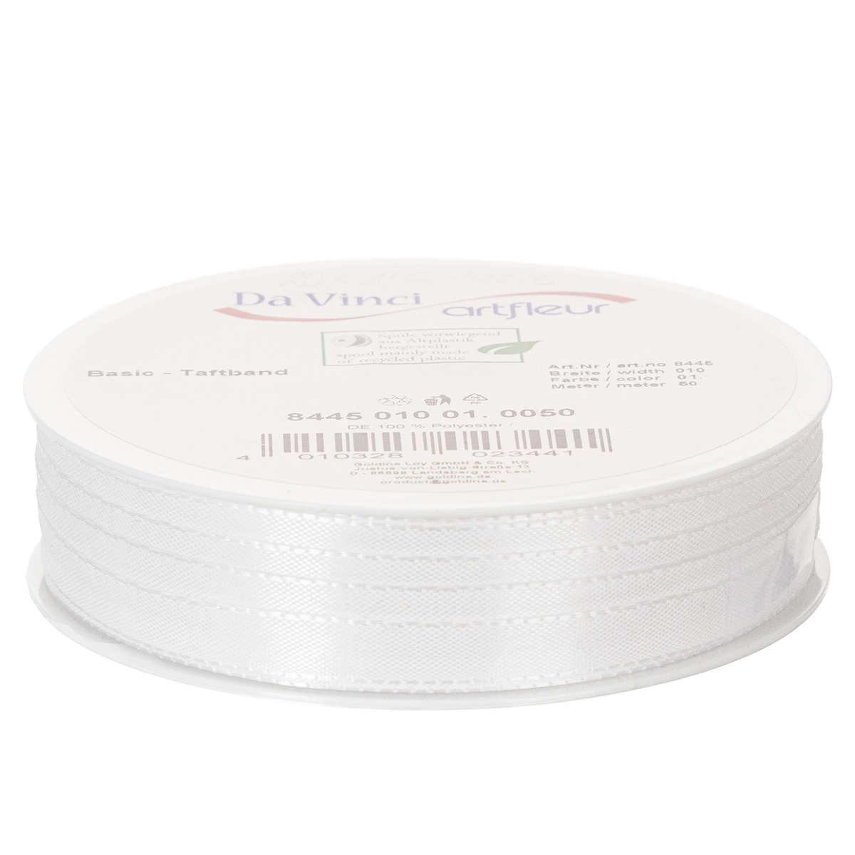 Ruban décoratif en taffetas blanc, 10 mm de large, 50 m de long