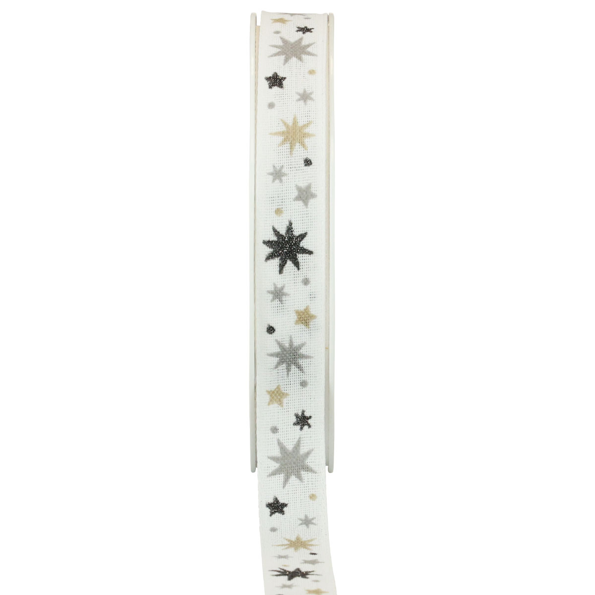 Ruban ruban cadeau de Noël motif étoile blanc 15mm 20m