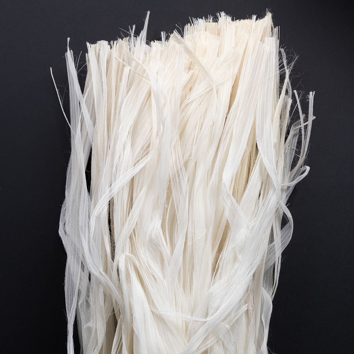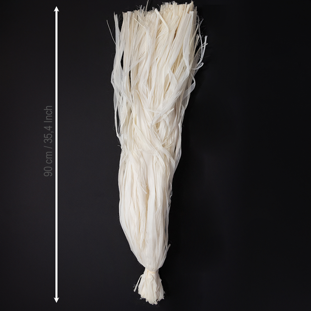 Le ruban décoratif naturel doit son nom à l'aspect squelettique de la fibre naturelle, constituée uniquement des nervures des feuilles du matériau naturel.