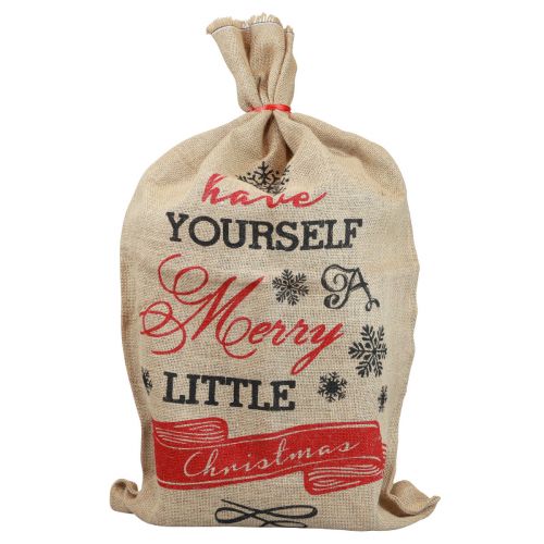 Le sac de jute rustique pour Noël a une impression de flocons de neige et l'inscription : « Have yourself a merry little Christmas » sur le devant. – Un joli dicton pour remettre avec style les cadeaux de Noël le soir de Noël dans le sac cadeau en tissu ou pour draper le sac cadeau de manière décorative devant le sapin de Noël à la maison.