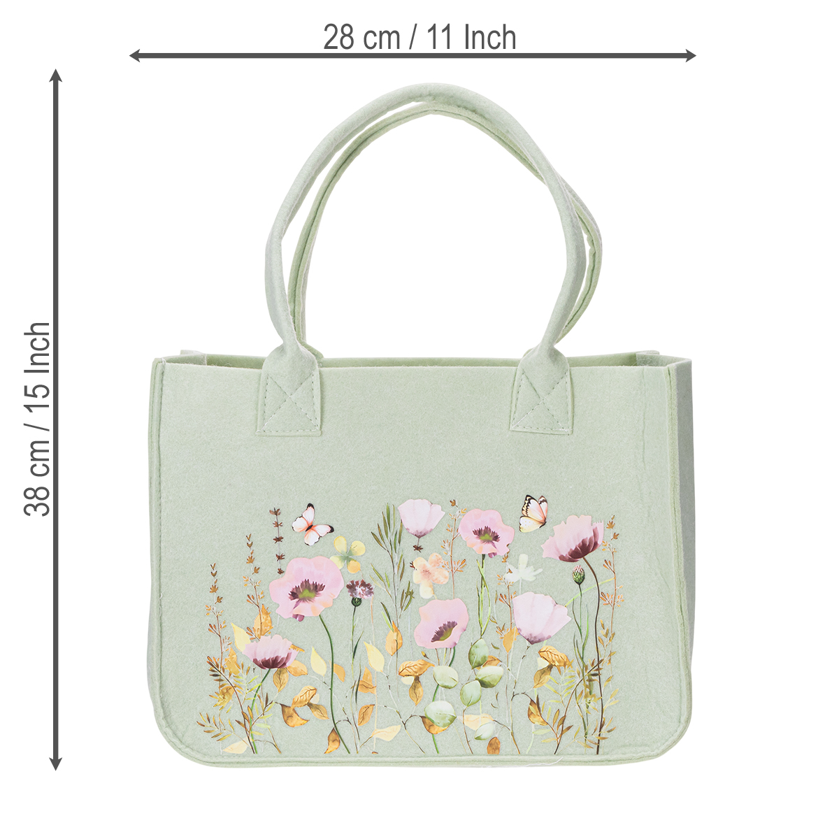 Confectionné en feutre robuste d'un élégant vert, ce sac apporte une touche de nature et un charme estival. Son motif floral délicatement dessiné sur le devant lui confère un style unique, évoquant les prairies fleuries de l'été. Que ce soit pour les courses quotidiennes, comme accessoire élégant au bureau ou même comme sac pratique pour une virée shopping, ce sac convient à presque toutes les occasions. Et son atout majeur ? Il offre un espace suffisant pour tout ce dont vous avez besoin au quotidien ou pour vos sorties.