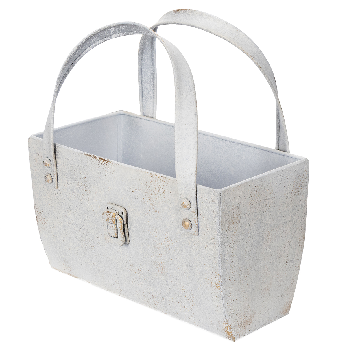 Ce sac en métal allie design moderne et charme rustique intemporel. Sa poignée robuste le rend non seulement facile à transporter, mais attire aussi tous les regards. Sa finition légèrement vieillie, d'inspiration vintage, lui confère une élégance particulière et s'harmonise parfaitement avec différents styles de décoration intérieure, du style champêtre au style industriel. Envie d'utiliser ce sac décoratif en métal comme cache-pot ? Aucun problème ! Il est idéal pour présenter avec style de petits bouquets de fleurs ou des succulentes. Les décorations saisonnières, comme des citrouilles d'automne ou une composition de Noël avec des branches de sapin, y trouveront également leur place. Tout aussi pratique : utilisez-le comme organisateur pour vos outils de jardinage, tels que ciseaux ou gants. Ainsi, tout est à portée de main et le résultat est esthétique. Sa couleur gris mat neutre s'accorde avec presque tous les décors et se marie à merveille avec d'autres éléments décoratifs. Par exemple, associez-le à nos vases en verre épurés ou à nos coupes en bois rustiques de Floristik24 pour une décoration encore plus harmonieuse. Un véritable accessoire polyvalent !