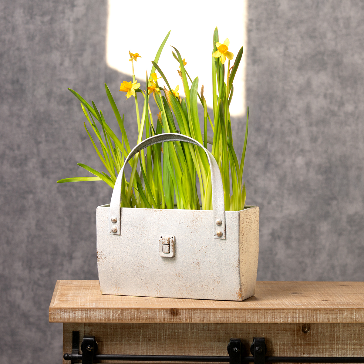 Ce sac en métal allie design moderne et charme rustique intemporel. Sa poignée robuste le rend non seulement facile à transporter, mais attire aussi tous les regards. Sa finition légèrement vieillie, d'inspiration vintage, lui confère une élégance particulière et s'harmonise parfaitement avec différents styles de décoration intérieure, du style champêtre au style industriel. Envie d'utiliser ce sac décoratif en métal comme cache-pot ? Aucun problème ! Il est idéal pour présenter avec style de petits bouquets de fleurs ou des succulentes. Les décorations saisonnières, comme des citrouilles d'automne ou une composition de Noël avec des branches de sapin, y trouveront également leur place. Tout aussi pratique : utilisez-le comme organisateur pour vos outils de jardinage, tels que ciseaux ou gants. Ainsi, tout est à portée de main et le résultat est esthétique. Sa couleur gris mat neutre s'accorde avec presque tous les décors et se marie à merveille avec d'autres éléments décoratifs. Par exemple, associez-le à nos vases en verre épurés ou à nos coupes en bois rustiques de Floristik24 pour une décoration encore plus harmonieuse. Un véritable accessoire polyvalent !
