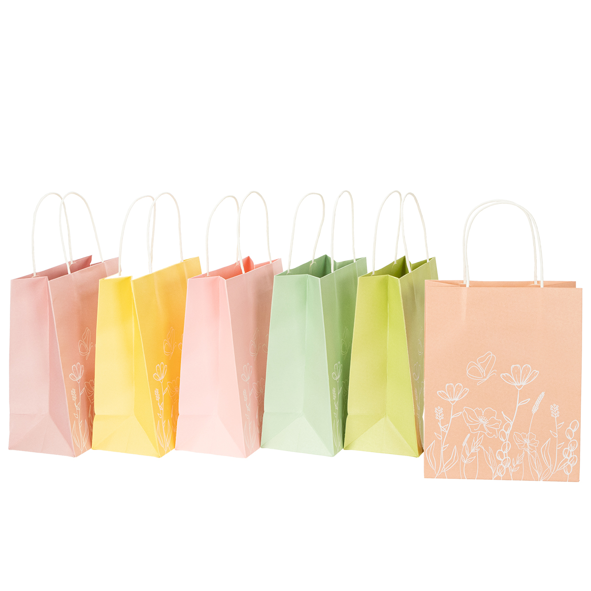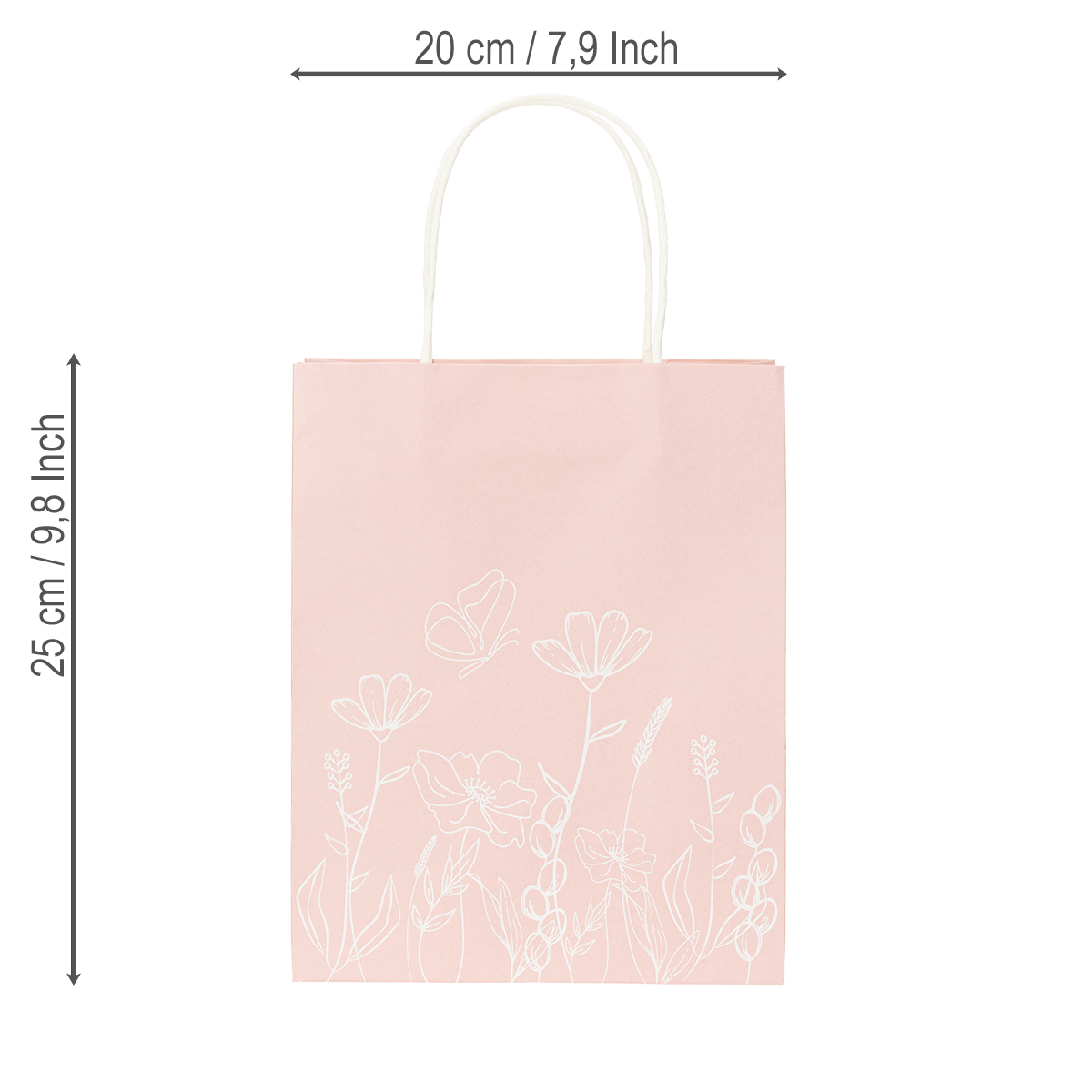 Le motif floral, subtilement imprimé sur les sacs, est particulièrement remarquable. Il leur confère une touche d'élégance et de fraîcheur, idéale pour les fêtes printanières, les anniversaires d'été ou les occasions romantiques. Les personnes soucieuses de l'environnement seront également séduites : les sacs sont en papier, ce qui en fait une alternative écologique aux emballages plastiques. Leurs poignées pratiques facilitent leur utilisation et permettent de transporter avec style la surprise qu'ils renferment.
