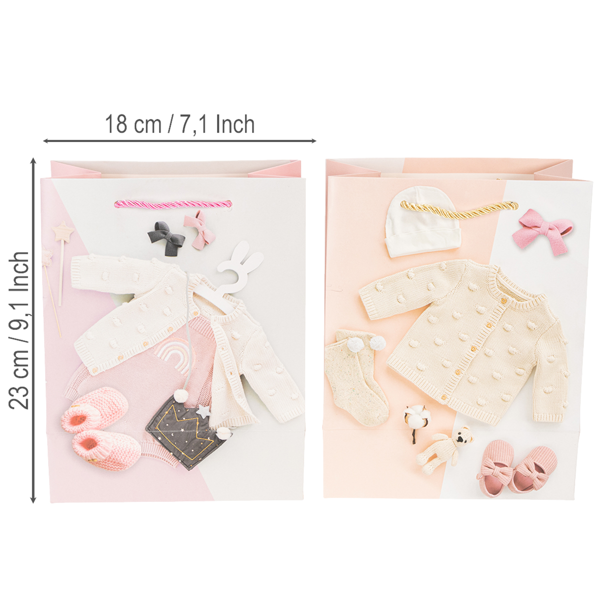 Sacs cadeaux pour bébés filles, sacs cadeaux de naissance, 23×18cm, 2 pièces