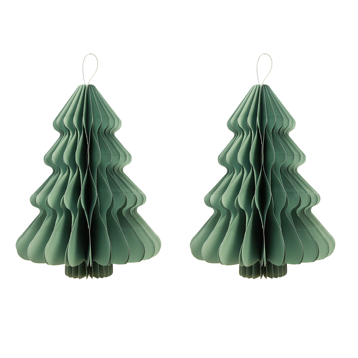 Sapin de Noël décoratif en papier à suspendre, couleur menthe argentée, H40 cm, lot de 2