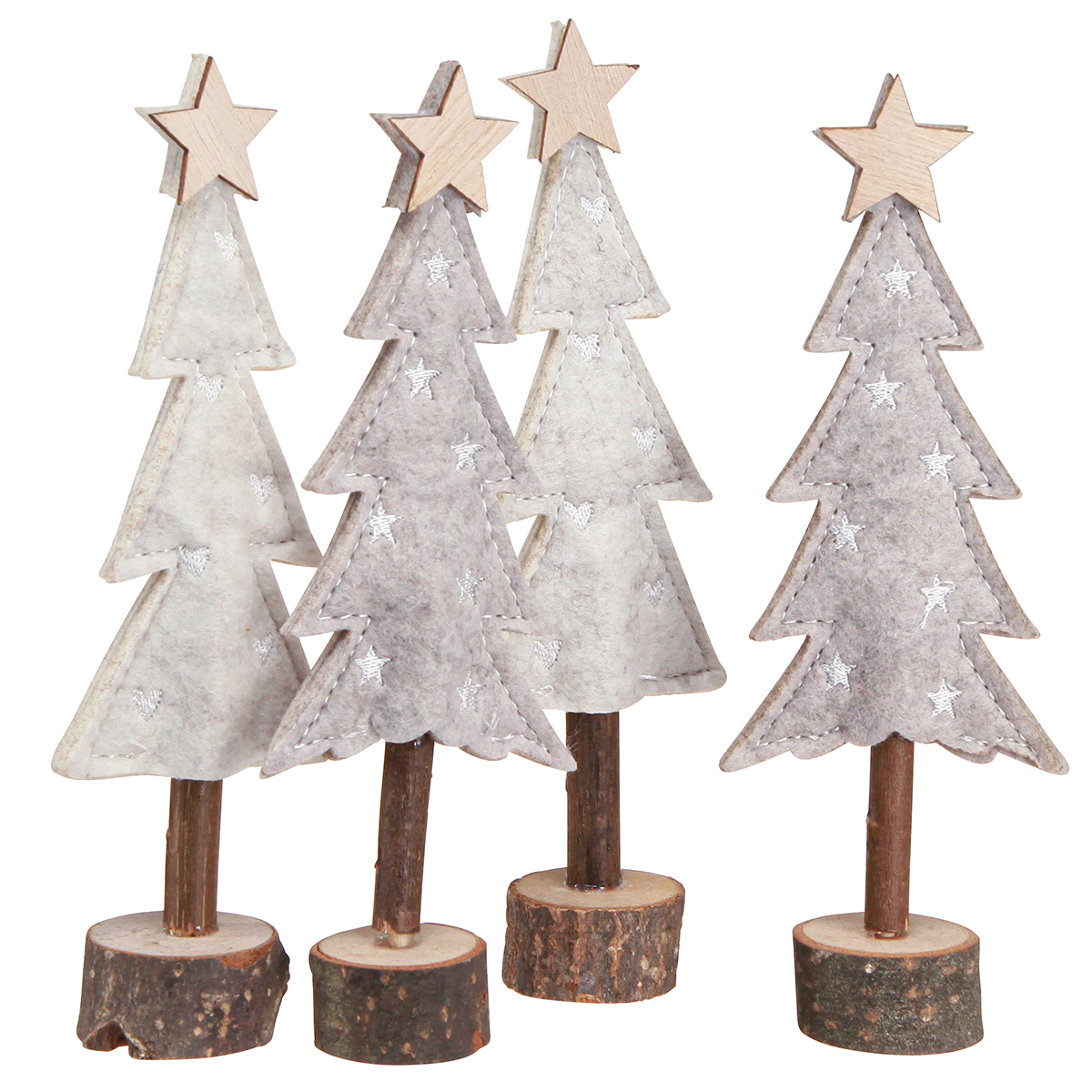 Sapin de Noël en feutre décoration avec étoile beige crème 18cm 4 pcs