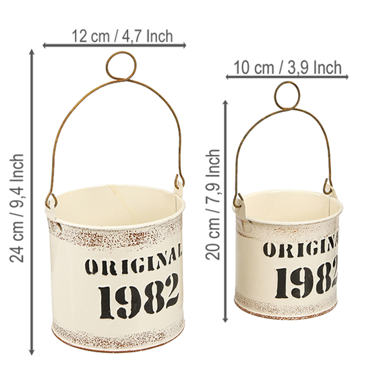 Seau décoratif avec anse « Original 1982 » Crème Ø12/10 cm, lot de 2 x 2.