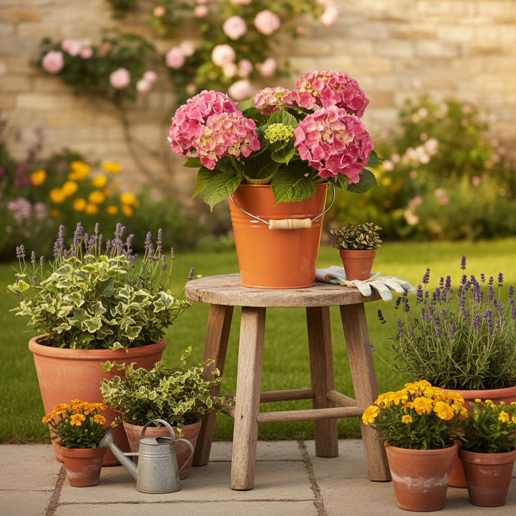La couleur chaude et terreuse donne plus d'espace au vert frais de vos plantes en pot. Il existe également le manche mobile avec le petit manche en bois naturel.