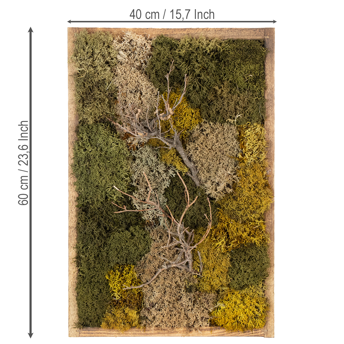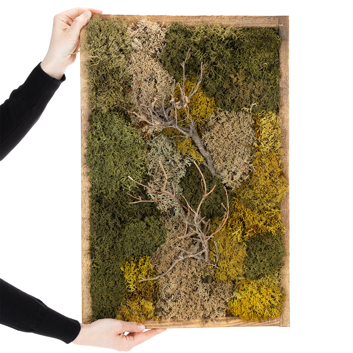 Tableau de mousse, véritable mousse et brindilles préservées, naturel, 60×40 cm