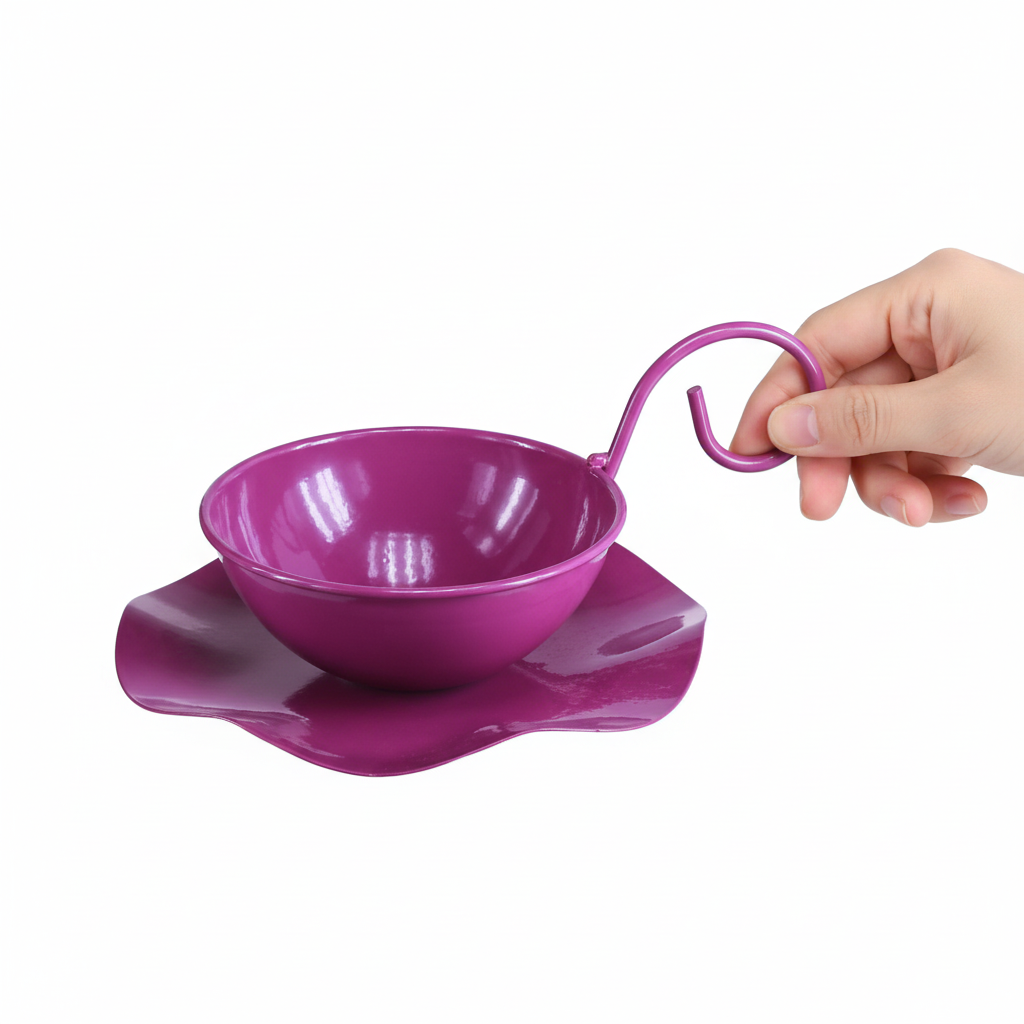 Faites plaisir à vos fleurs avec la coupelle décorative en métal violet. Cette tasse à thé ajoutera de la couleur à votre décoration comme bol à fleurs au printemps et en été ! Avec un diamètre d'ouverture d'environ 11,5 cm et une hauteur de 8 cm, il est idéal pour diverses utilisations décoratives, aussi bien à l'intérieur que dans le jardin d'été. La couleur violette dégage une élégance mystérieuse et s'harmonise parfaitement avec des tons pastel naturels ou des couleurs d'accent fortes, ce qui ouvre de nombreuses possibilités de conception créative. Il convient particulièrement de noter la poignée élégamment incurvée et la soucoupe ondulée en forme de fleur fixée à la tasse, qui est non seulement visuellement attrayante, mais aussi fonctionnellement impressionnante. Cette tasse décorative laquée violette est livrée par lot de deux et est un incontournable absolu pour tous ceux qui souhaitent enrichir leur environnement avec des accents de bon goût.
