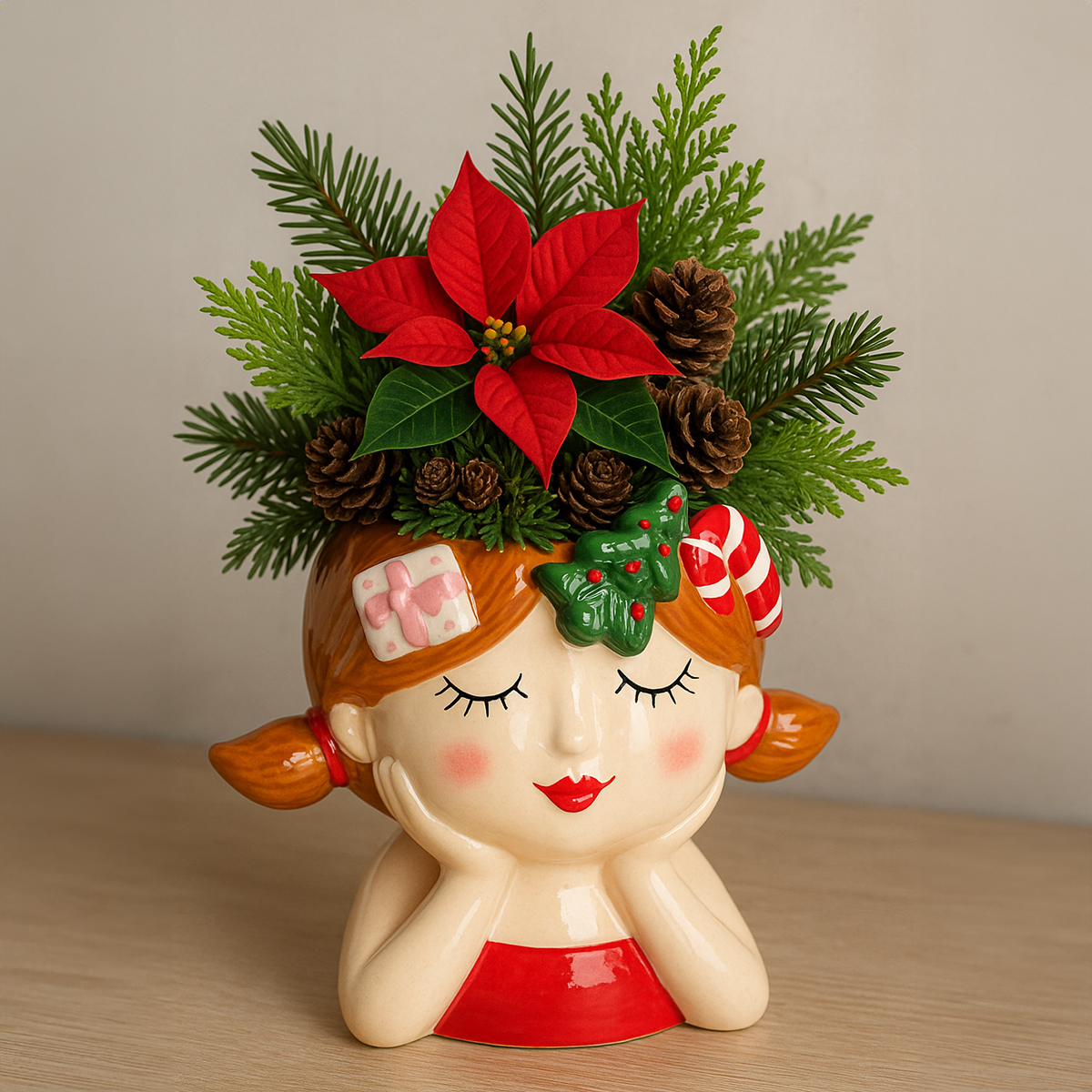 Cache-pot en céramique représentant une fille pour Noël – ludique et polyvalent