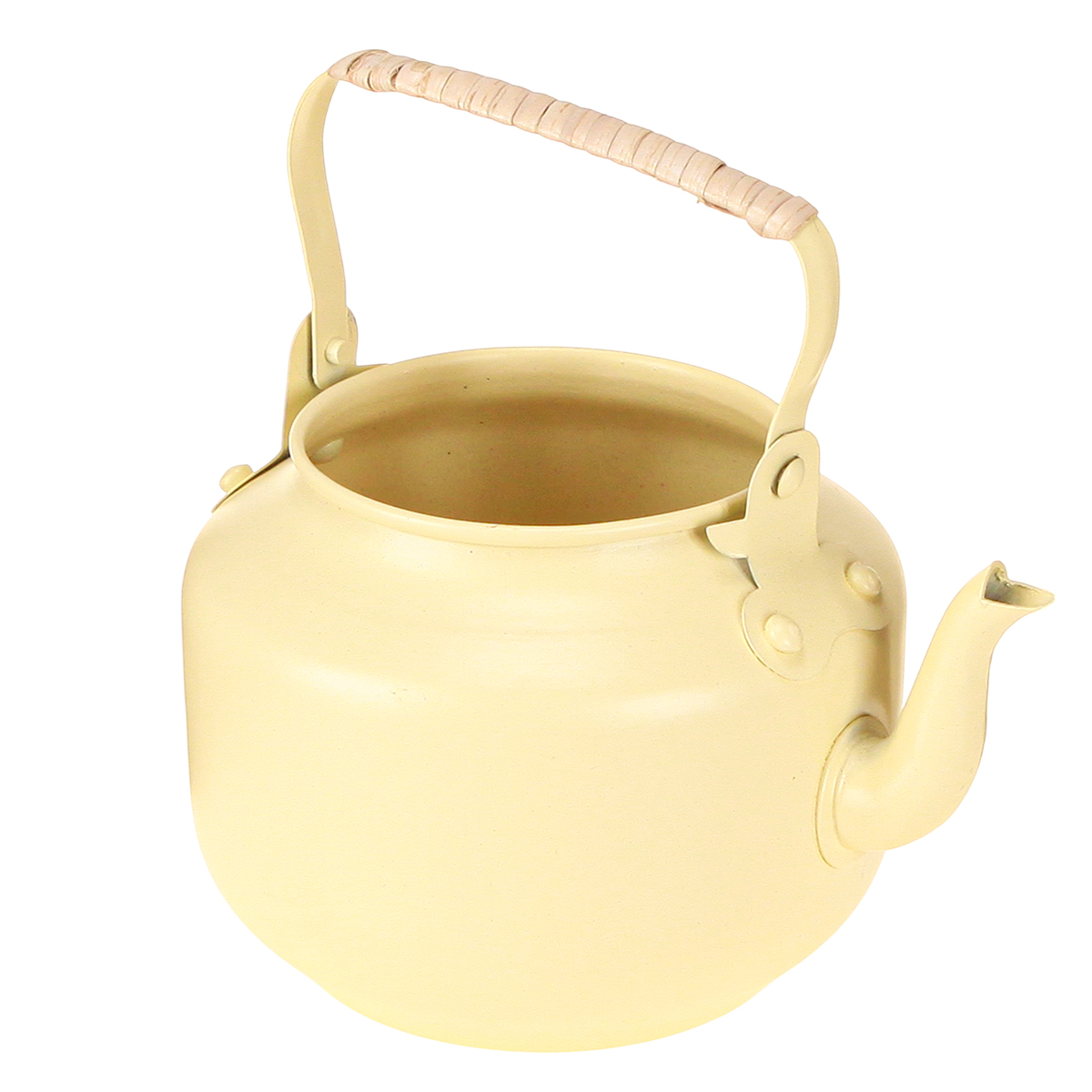 Qui n'apprécie pas ces petits moments de charme chez soi, empreints de chaleur et de convivialité ? Cette théière décorative jaune y contribue pleinement ! Alliant style traditionnel et touche vintage, elle sublimera à coup sûr votre intérieur. Son design artisanal et sa poignée en bois naturel lui confèrent un charme unique qui attire immédiatement le regard. Posée sur une table d'appoint au salon, en objet décoratif dans la cuisine ou encore comme accessoire élégant au jardin, cette théière classique couleur crème est un véritable atout. Son secret ? L'alliance d'une élégance discrète, d'une couleur intemporelle et d'un métal de haute qualité.