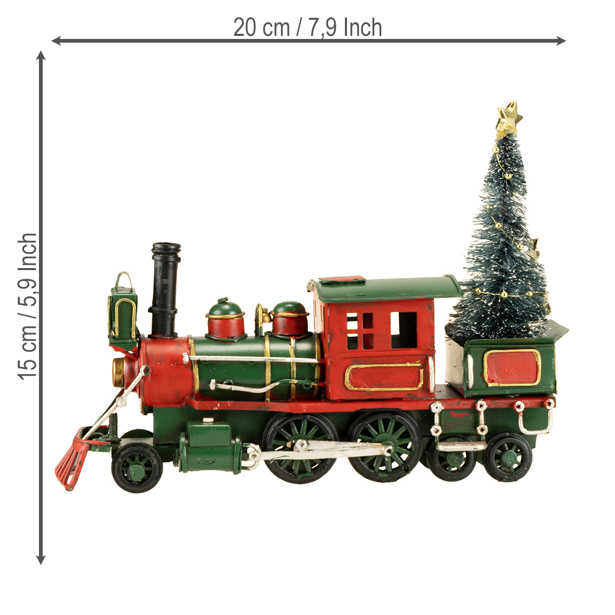 Train de Noël avec locomotive en sapin vert de Noël 20cm