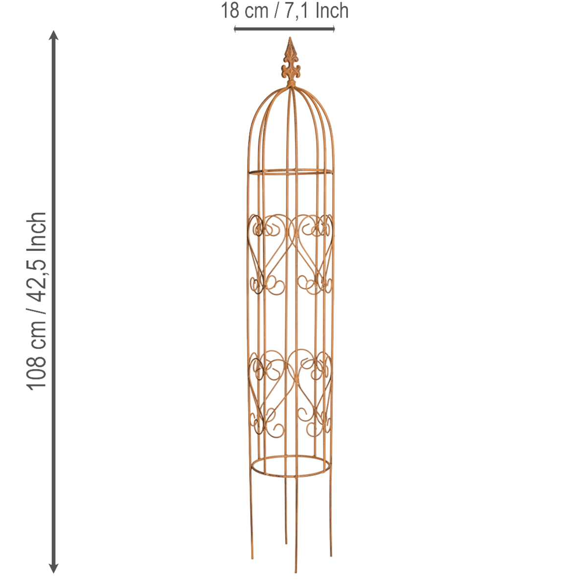 Idéal pour une utilisation en extérieur abrité, ce treillis métallique convient également à une utilisation en intérieur, par exemple pour mettre en valeur des plantes artificielles. Grâce à ses dimensions compactes (18 cm de diamètre et 108 cm de hauteur), il est flexible et facile à installer.