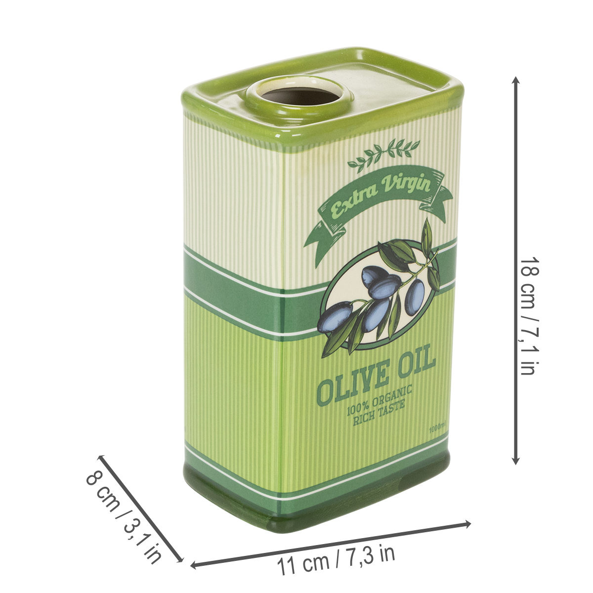 Vase à huile d'olive en céramique, idéal pour la décoration de la cuisine et d'une table méditerranéenne, 18 cm