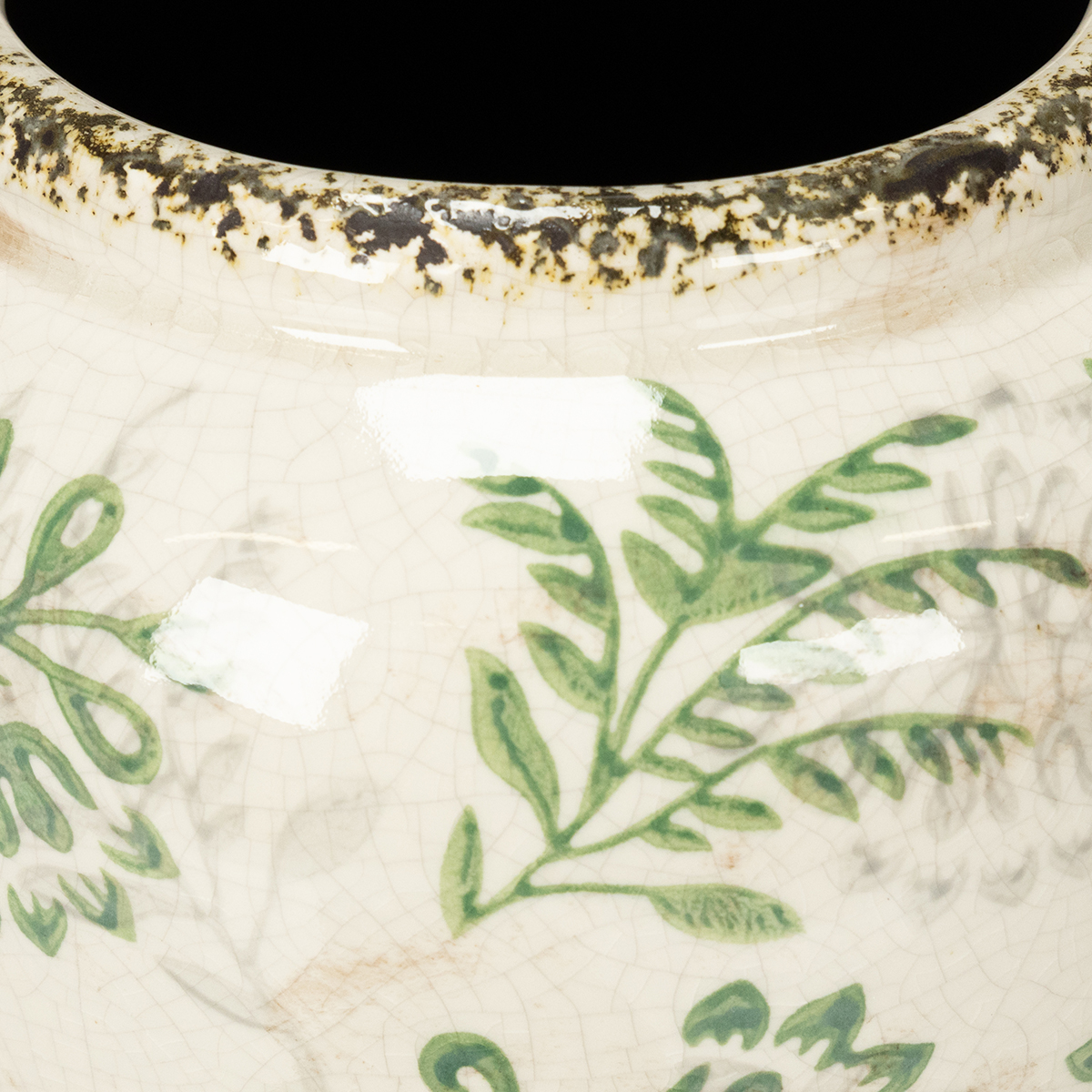 Ce vase à motif végétal allie esthétique raffinée et fonctionnalité. Au premier regard, le délicat imprimé de plantes vertes sur céramique blanche séduit : une combinaison harmonieuse qui dégage une fraîcheur et une légèreté subtiles. Il est idéal pour quiconque recherche une pièce maîtresse pour son intérieur. Disposé dans un style champêtre, il s’accorde parfaitement avec des meubles en bois naturel ou en rotin. Mais il trouve également sa place dans un décor scandinave moderne grâce à son élégance discrète.