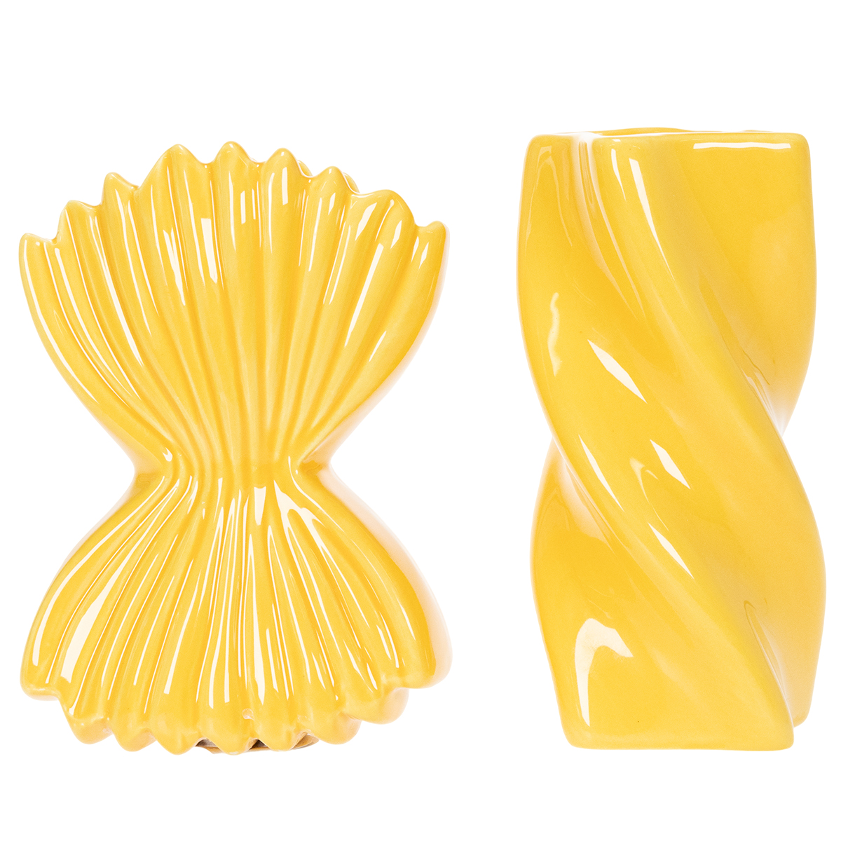 Ces vases décoratifs en céramique séduisent au premier regard par leur design exceptionnel, inspiré des formes ludiques des célèbres pâtes italiennes. Parfaits pour les amateurs de décorations originales et de pièces design modernes ! L’alliance d’un jaune éclatant et de détails raffinés fait de ces vases un accessoire élégant pour les intérieurs ou les bureaux de style méditerranéen. Associez-les à une nappe simple ou à un décor d’inspiration méditerranéenne pour une harmonie parfaite.
