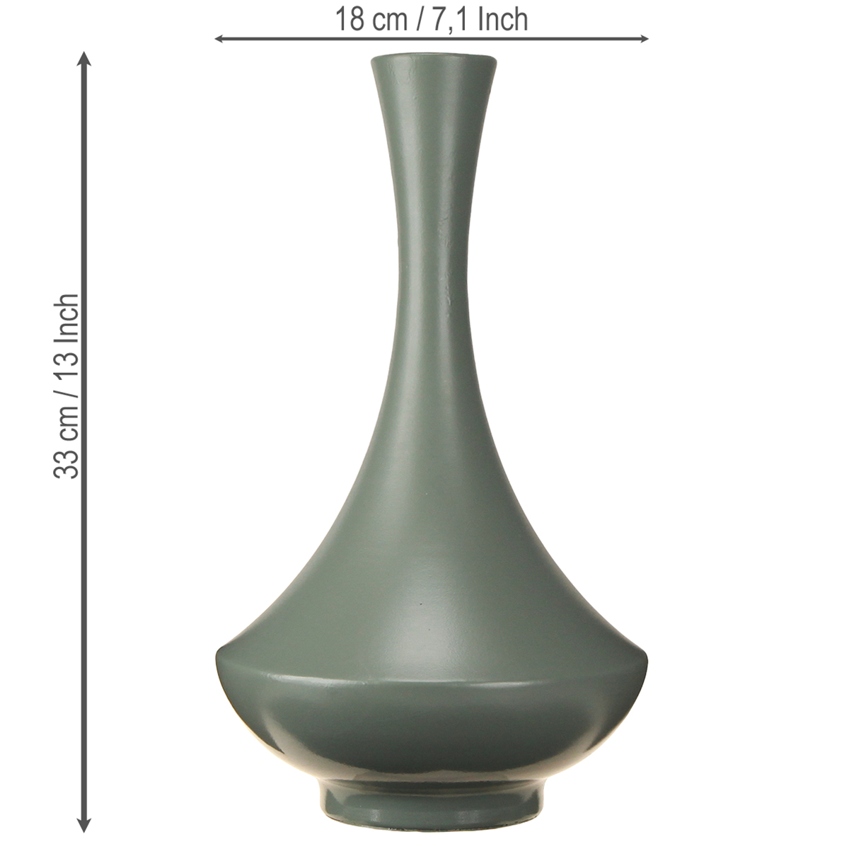 Ce vase décoratif séduit par ses courbes harmonieuses et la qualité de sa fabrication en métal. Sa finition vert mat, à la fois sobre et élégante, souligne son caractère moderne. Utilisé comme centre de table dans la salle à manger, comme élément décoratif sur une commode ou comme pièce maîtresse sur un bureau, sa polyvalence en fait un accessoire indispensable pour toute maison. Avec ses 33 cm de hauteur, il s'intègre parfaitement à tous les intérieurs tout en y apportant une touche d'originalité. Les adeptes d'une esthétique minimaliste l'adoreront, mais il se marie également à merveille avec d'autres objets décoratifs.
