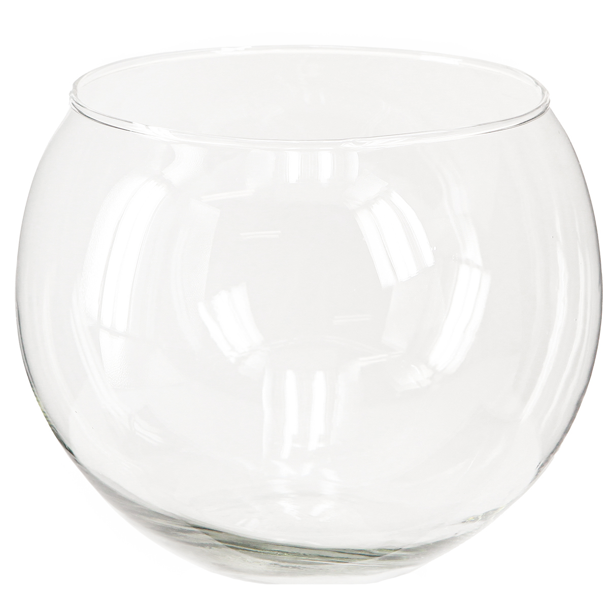 Vase boule en verre transparent, vase de table rond, vase à fleurs Ø15,5 cm H12,5 cm