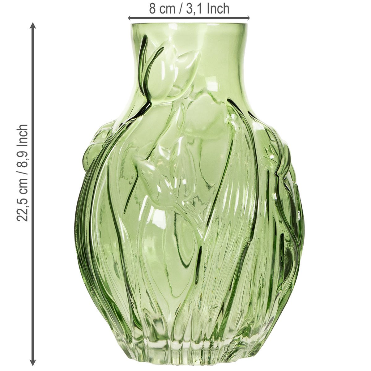 Vase en verre à motif de tulipe en relief, pour la décoration intérieure, 22,5 cm