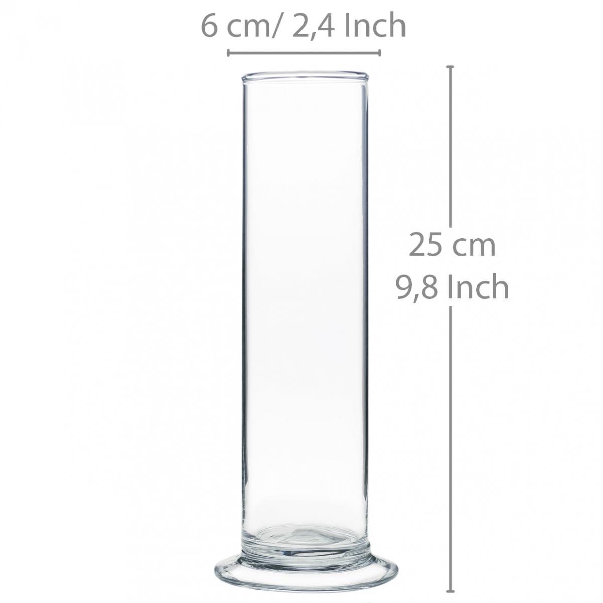 Vase en verre avec socle, transparent, Ø6cm, H25cm