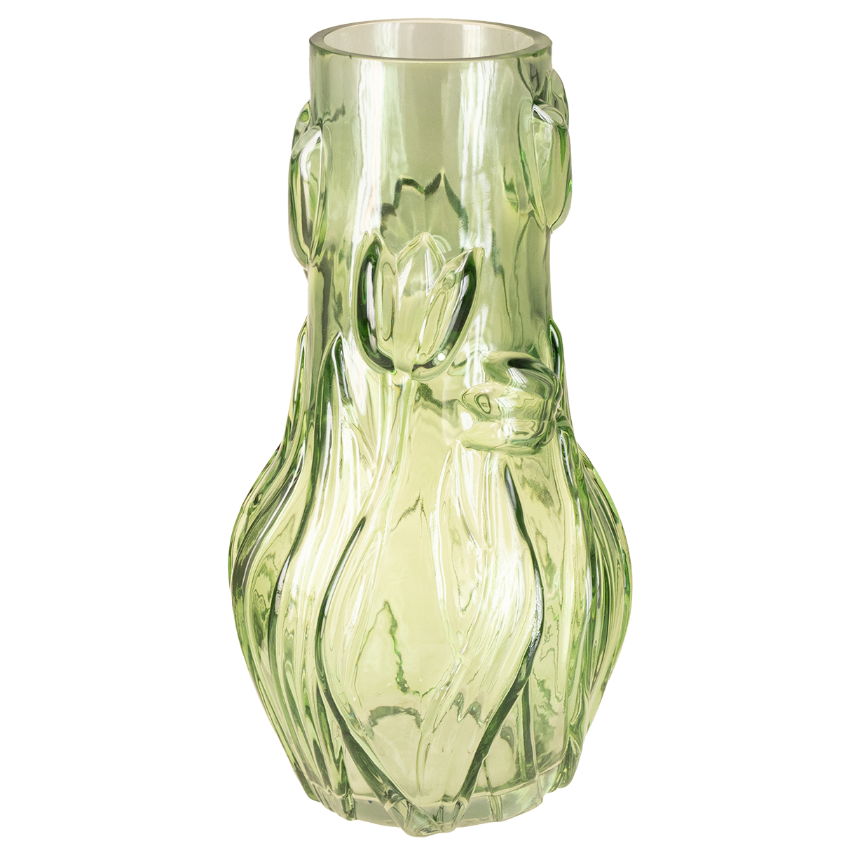 Vase en verre orné d'un motif de tulipe en relief pour une décoration harmonieuse, 30 cm