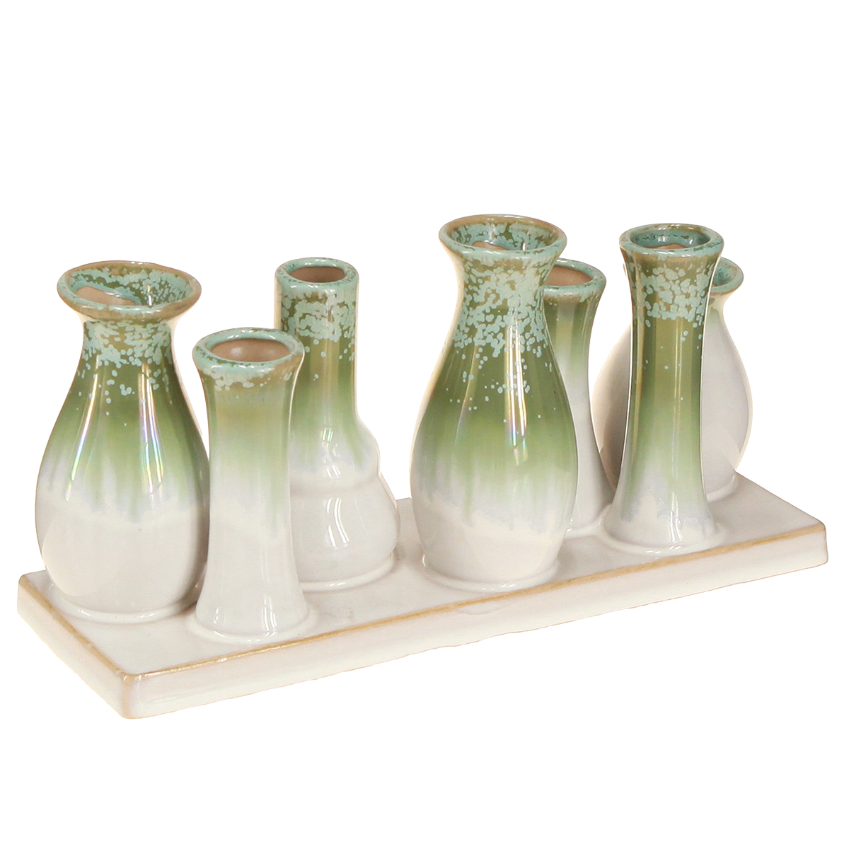 - Ensemble de 7 vases décoratifs en céramique sur un plateau robuste